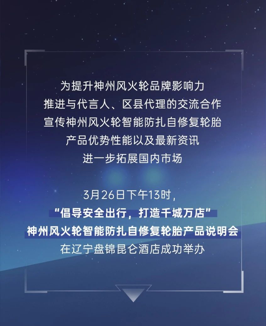 【盤錦站】“倡導(dǎo)安全出行,打造千城萬店”神州風(fēng)火輪智能防扎自修復(fù)輪胎產(chǎn)品說明會