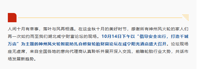 【咸寧站】“倡導(dǎo)安全出行,打造千城萬(wàn)店”神州風(fēng)火輪智能防扎自修復(fù)輪胎財(cái)富論壇